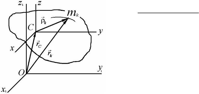 Сxyz - подвижная система координат с началом в центре масс С, Сxyz движется поступательно вместе с центром масс.