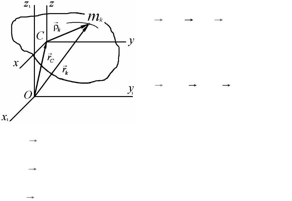 где vk — абсолютная скорость k-й точки системы; vC — абсолютная скорость центра масс;