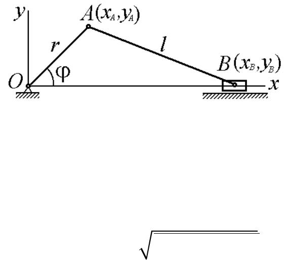 xB = r cos + l2 − r2 sin2 ; yB = 0.
