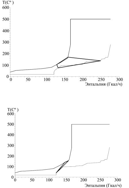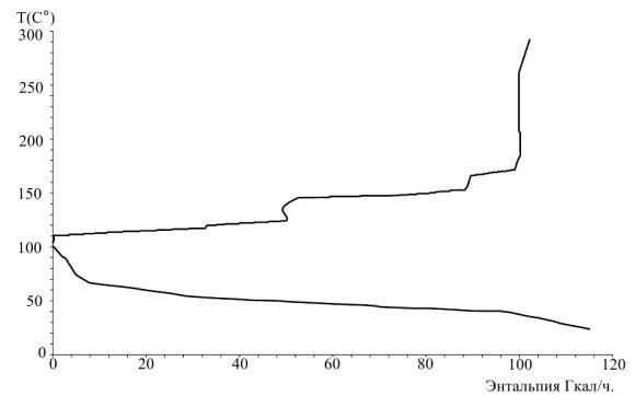 ½ значения ΔTmin., построение общей композитной кривой автоматически включает наличие перепада температур между горячим и холодным потока-