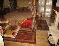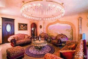 Итак, интерьер в восточном стиле… Раньше в дворянских домах под него выделяли целую «восточную» комнату, полностью отдавая ее экзотической роскоши. Сегодня вам, скорее всего, придется пожертвовать для Востока вашу главную комнату - гостиную. Приступая к переделке, вы должны учесть как минимум две вещи: если у вас небольшая комната, то от ориентального декора пространство станет казаться еще меньше, потому что базовая цветовая гамма восточного интерьера достаточно темная. И второе: перед тем как перейти к ремонту, взвесьте свои иммунные возможности - если у вас есть хотя бы небольшая склонность к аллергии, восточный интерьер может оказаться неприемлем для вас из-за обилия в нем текстиля. Пол и стены в узорах. Предположим, никаких противопоказаний нет - тогда можно приступить к оформлению. Если у вас на полу паркет, будьте готовы к тому, что вы закроете его ковром. Если же ковер на полу не входит в ваши планы, замените паркет на ковролин какого-нибудь восточного оттенка: бордовый, пурпурный, синий, терракотовый.