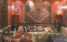 стены арабская мебель придется, ни чем попало, а «богатыми» тканями - шелком,