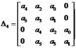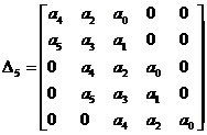 Каждый диагональный минор Dn-1 определителя Гурвица получают из предыдущего минора вычёркиванием нижней строки и правого столбца. Последний диагональный минор Гурвица D1 = an-1.