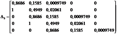 Затем определитель заполняют по столбцам: выше диагональных коэффициентов записывают коэффициенты с убывающими индексами, а ниже - с возрастающими. При достижении нулевого или n-го индекса далее ставятся нули.
