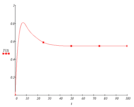 1.18 - Кривая переходного процесса, построенная частотным методом в MathCAD