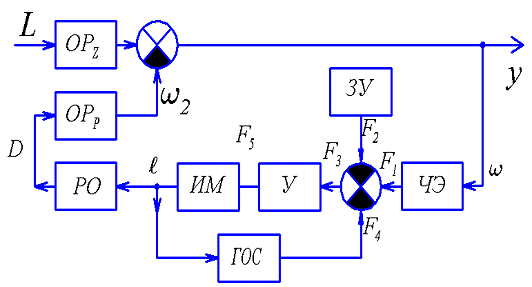 ИМ - исполнительный механизм, ГОС -гибкая обратная связь (изодромная)
