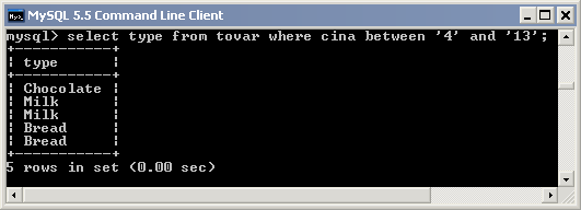 Обрати типи продуктів (молочні, м'ясні, рибні і т.д.), що мають вартість у вказаному ціновому діапазоні.