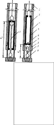 Штанговый глубинный насос (рис. 2.3) представляет собой одноплунжерный насос с длинным цилиндром, шариковыми клапанами и длинным проходным плунжером. При ходе плунжера вверх он нагнетает жидкость, находящуюся между стенками цилиндра и штангами, а в полость под плунжером поступает жидкость из скважины. При ходе вниз насос нагнетает (выжимает) объем жидкости, равный объему опускающегося в цилиндр штока, т.е. это насос дифференциального действия. По конструкции насосы бывают с щелевым уплотнением зазора между металлическим