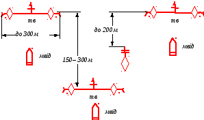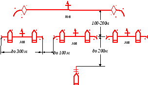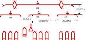Мал. 7. Бойовий порядок механізованої роти, яка наступає в пішому порядку. Положення взводів – у лінію (варіант)