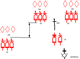 Мал. 5. Передбойовий порядок механізованої роти. Положення механізованих взводів – у лінію колон (варіант)