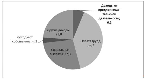 другие доходы, на третьем месте были социальные выплаты и на четвертом и пятом