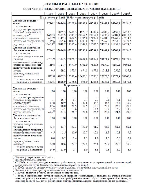 доходов населения», в которой представлены данные за период с 1995 по 2010 гг.
