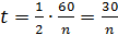 время холостого хода щеки t,с, при частоте вращения вала п в минуту,