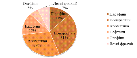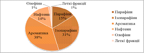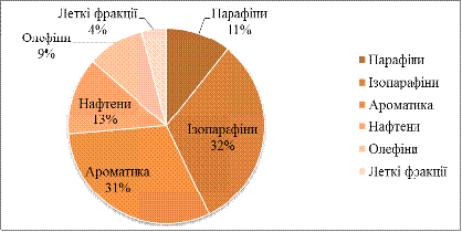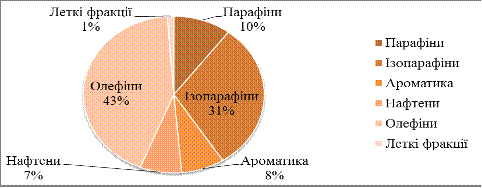 Об`ємна доля вуглеводів: - олефінових - ароматичних |