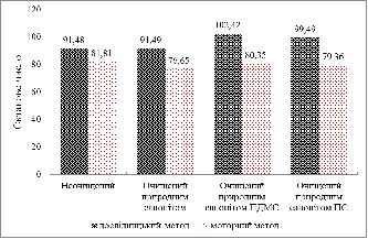 У наступній серії експериментів очистка бензину А-92 проводилась сапонітами, які пройшли модифікування, а саме обробку поверхні полісилоксанами, а саме полідиметилсилоксану (ПДМС) та полісилоксану (ПС). У результаті модифікування органосилоксанами гідрофільна поверхня природних алюмосилікатів стає гідрофобною, що пояснюється природою модифікатора, і забезпечує необхідну селективність адсорбенту по відношенню до молекул з локально зосередженою електронною густиною за рахунок регулювання внесків енергії специфічної і неспецифічної міжмолекулярної взаємодії у системі адсорбат-адсорбент. Зміна адсорбційних властивостей алюмосилікату при модифікуванні органосилоксанами визначає вибірковість дії та селективність модифікованого матеріалу по відношенню до нафтопродуктів та органічних речовин [11, 26, 29].