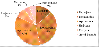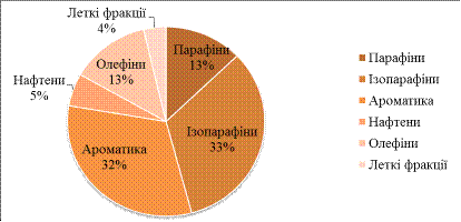 Таблиця 3.5 - Мольний вміст вуглеводів у пробі бензину, очищеного блакитною глиною.