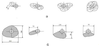 Динаміка (а) та види (б) утворення муфти ожеледі на проводі з часом