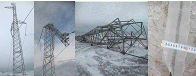 Рисунок 1.2 Приклад аварій, спричинених відкладанням ожеледі: