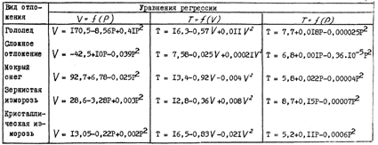 Були отримані також кореляційні рівняння між цими величинами. Коефіцієнти рівнянь знаходились за способом найменших квадратів. В якості кореляційних рівнянь використовувалися поліном другого ступеня і кореляційні рівняння ступеневого, показового і логарифмічного типу. Найкращий зв'язок між швидкістю наростання, масою і тривалістю ожеледі дають кореляційні рівняння другого порядку. Рівняння регресії наведено в табл. 1.2.