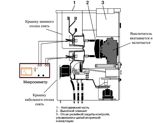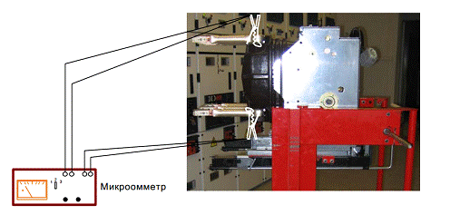 основных контактов выключателя с помощью микроомметров или мостов постоянного