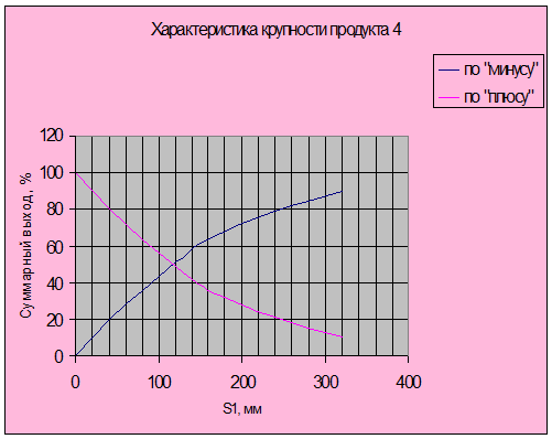 графику: «Характеристика крупности продукта 4» см. рис. 4.1, равно 10,