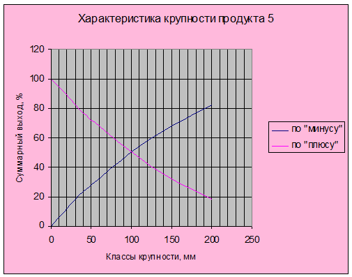 4.2), строим график: «Характеристика крупности продукта 5» см. рис. 4.2.