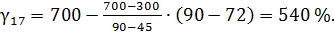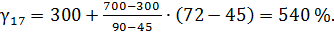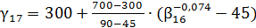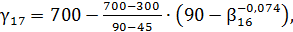 β16-0,074 = 45 %, γ17 = 300 %; β16-0,074 = 90 %, γ17 = 700 %.