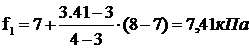 Определим f1 при z1=3,410 м для суглинка с IL=0,8. При zв=3 м fв=7 кПа; при zн=4 м fн=8 кПа. Тогда
