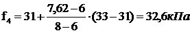 Определим f4 при z4=7,62 м для суглинка с IL=0,41. При zв=6 м fв=31 кПа; при zн=8 м fн=33 кПа. Тогда