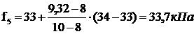 Определим f5 при z5=9,32 м для супеси с IL=0,4. При zв=8 м fв=33 кПа; при zн=10 м fн=34 кПа. Тогда