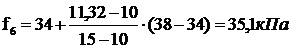 Определим f6 при z5=11,32 м для супеси с IL=0,4. При zв=10 м fв=34 кПа; при zн=15 м fн=38 кПа. Тогда