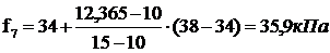 Определим f7 при z5=12,365 м для супеси с IL=0,4. При zв=10 м fв=34 кПа; при zн=15 м fн=38 кПа. Тогда