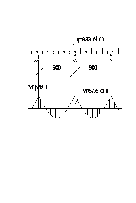 Ростверк рассчитывают как железобетонную многопролетную балку с опорами на головы свай. Расчетная нагрузка на 1пог. м ростверка с учетом его собственного веса (из п. 2.1.1) q=833 кН/м.