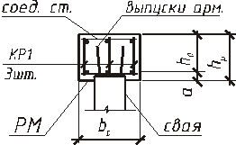 Сопряжение сваи с ростверком жёсткое, т.к стволы свай располагаются на слабых грунтах. В таком случае высота ростверка определяется заделкой головы сваи в ростверк на глубину, равную длине анкеровки арматуры сваи.