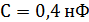 Дано: С=0,4 нФ=4∙10-10 Ф