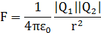 взаимодействияFмежду двумя точечными зарядами, находящимися в вакууме,