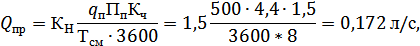 соответственно секундные расходы на производственные, хозяйственные и пожарные