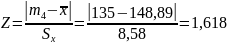 Проверяем наличие промахов с помощью критерия Шовене. Аномальным показанием является №4. Вычисляем нормированное отклонение от среднего арифметического результата наблюдений