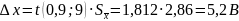 Коэффициент Стьюдента t(0,9;9) = 1,812