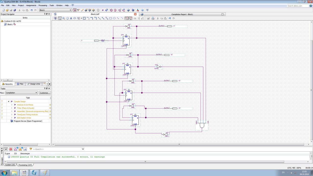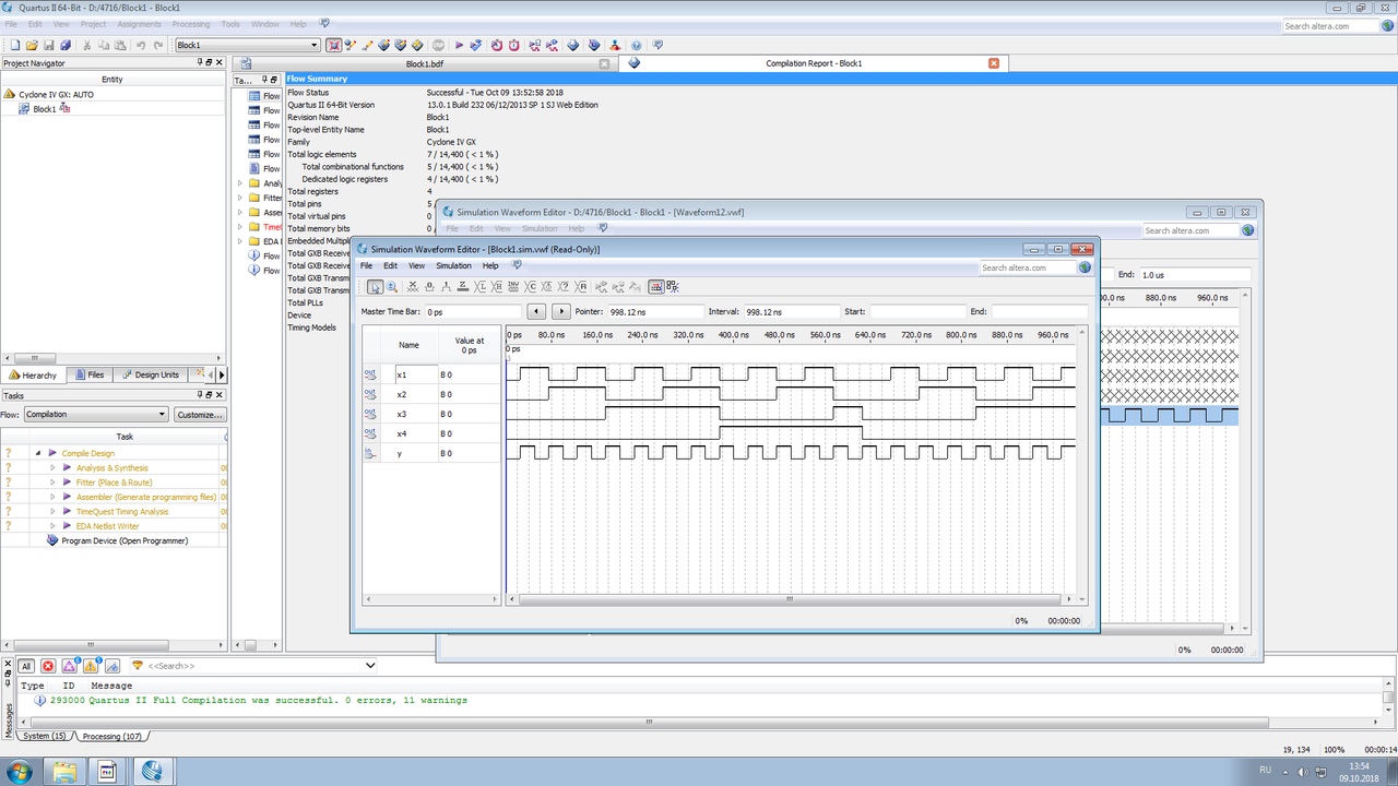 Знакомство с особенностями работы приложения Quartus II в процессе моделирования цифровых устройств на ПЛИС.