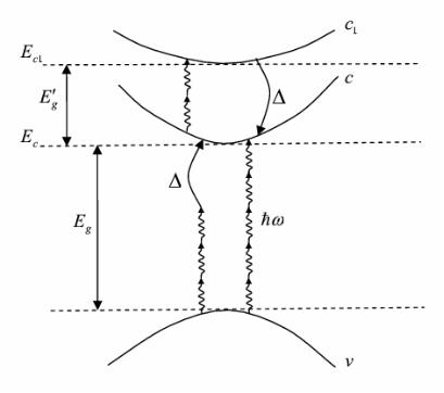 Рассмотрим, модель кристалла, включающую две зоны проводимости c и с1 и валентную зону v. Для определенности предположим, что энергетический зазор Eg между валентной зоной и нижней зоной проводимости