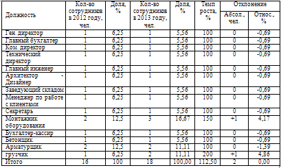 Таблица 1 Динамика и структура численности персонала ООО "ДЕКОМ" за 2012-2013гг.