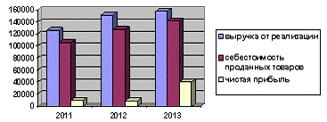 Из таблицы 3 видно, что деятельность предприятия в 2012 году ухудшилась. Прибыль до налогообложения составила 13210 тыс. руб., что меньше 2011 года на 1099 тыс. руб. Это произошло за счет увеличения операционных расходов на 14130 тыс. руб. и внереализационных расходов на 854 тыс. руб. В 2013 году прибыль до налогообложения увеличилась на 4258 тыс. руб. Увеличение произошло за счет уменьшения операционных расходов на 10547 тыс. руб. Чистая прибыль в 2013 году увеличилась на 31325 тыс. руб. В 2012 году увеличилась выручка от реализации на 25129 тыс. руб. или на 20%, себестоимость проданных товаров, продукции, работ, услуг на 22472 тыс. руб. или на 21,4%. В 2013 году увеличилась выручка от реализации на 6210 тыс. руб. или на 4,1%, себестоимость проданных товаров, продукции, работ, услуг на 14294 тыс. руб. или на 11,2%. В 2012 году прибыль от продаж составила 2829 тыс. руб. и увеличилась по сравнению с 2011 годом на 16,4%. В 2013 году прибыль от продаж уменьшилась по сравнению с 2012 годом на 8493 тыс. руб. или на 34,9%.