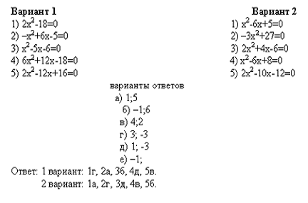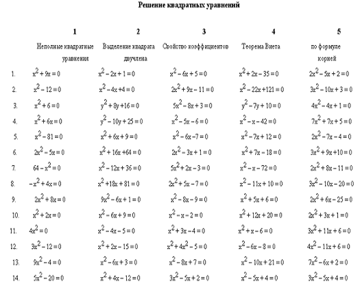 Решить (устно) квадратное уравнение. Каждый ученик устно решает одно из