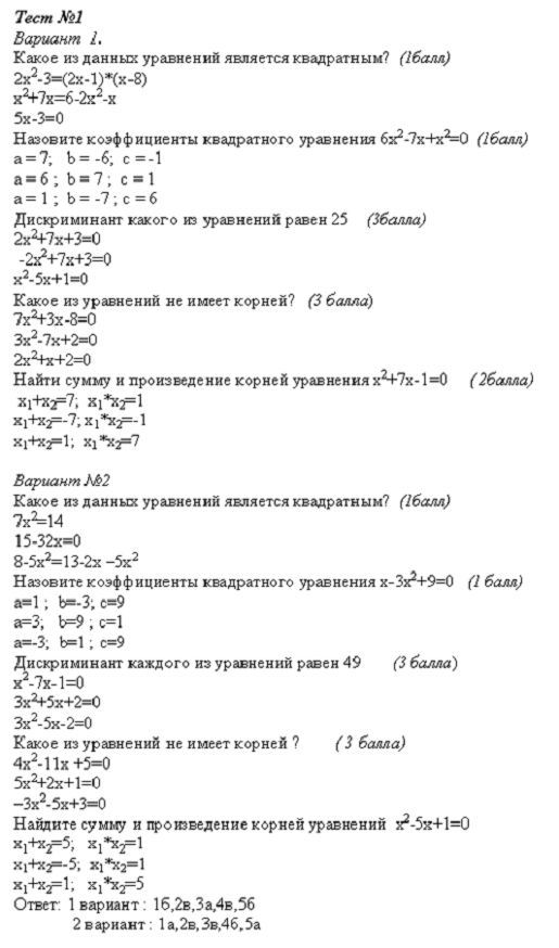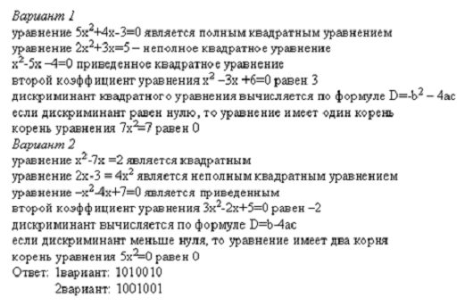 Тест №3 (тест соответствия). Указать букву, под которой указано решение уравнения.