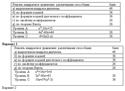 Учащиеся сами выбирают уравнение любого уровня. За уравнение уровня В получают еще дополнительно 2 балла ,за уровень С - 3 балла.