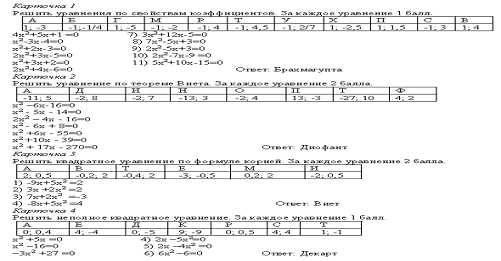 уравнений. Работа по принципу “цепочки”. За верно решенное уравнение 3 балла.