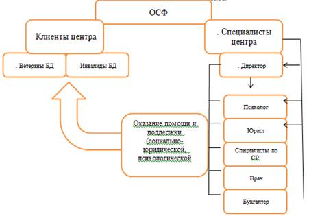 Разделение направлений деятельности центра при выполнении ОСФ (Основная социальная функция центра заключается: в оказании социальной помощи по реабилитации инвалидам и ветеранам боевых действий. , обусловлено делением внутреннего содержания объекта ЭСИ на элементы:. С одной стороны специалисты центра: