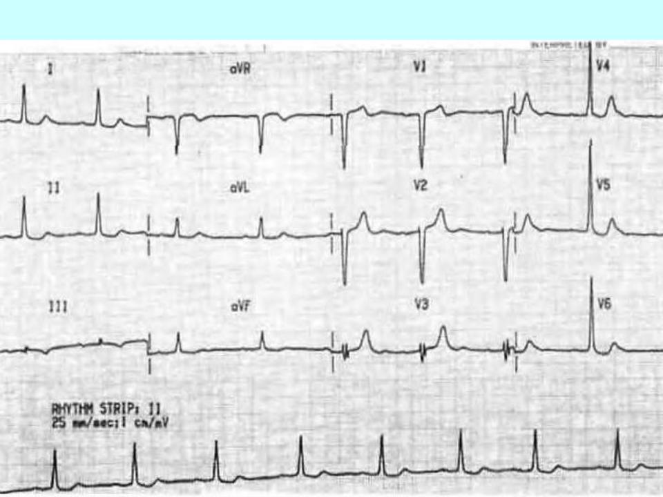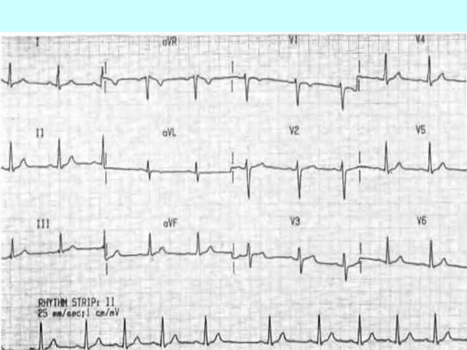 3.Different intervals R-R (P-P), and this the difference is greater than 10% of the average R-R distance (R-R), usually about 12-0.15 C and more.
