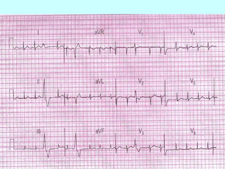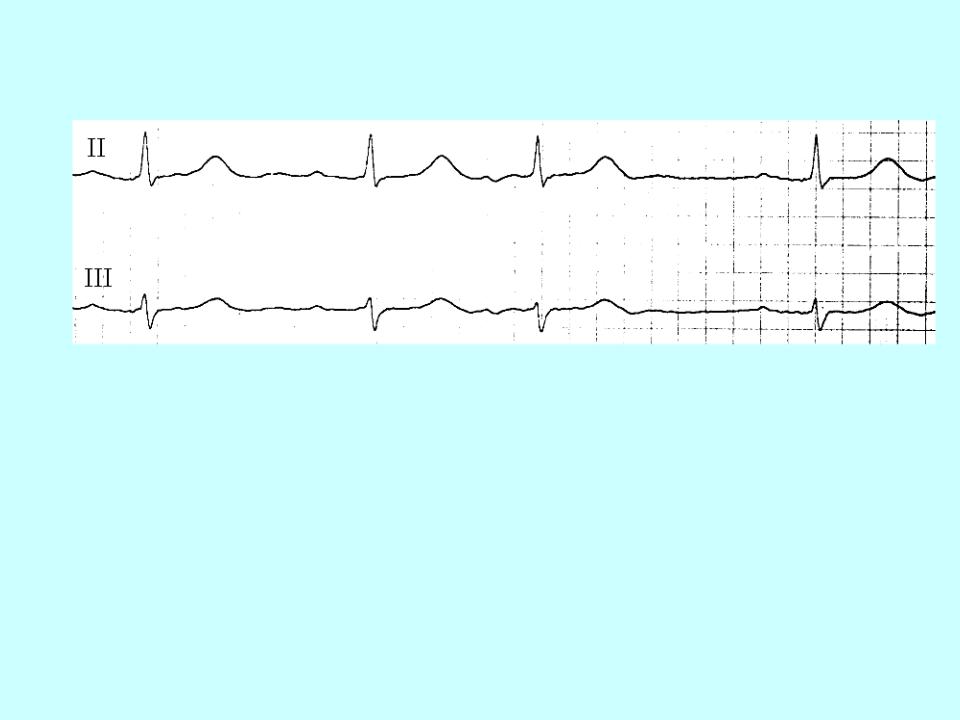 2. Possible lengthening of the interval P-Q (R) or loss individual QRS complexes (development atrioventricular block I or I degree).